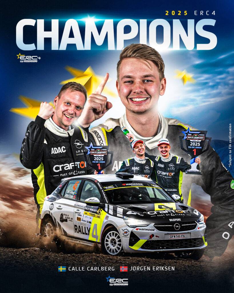 Att få en svensk Europamästare med Opel är så klart stort men mitt Hörby-hjärta gläds även åt att Victor Hansen/Ditte Kammersgaard lyckades klara bronset i ERC4. SMK Hörby-föraren planerad full säsong i junior-klassen men tappade fullt naturligt motivationen, efter att italienaren Matteo Doretto omkom på test före deltävlingen i Polen. I Ungern stod han, Victor och Calle på pallen och nu någon vecka senare var Matteo borta. En händelse som skakade om men trots allt genomförde Victor och Ditte rallyt i Polen. Fyra körda tävlingar gav ändå poäng tillräckligt för att få ett välförtjänt EM-brons till Hörby. Fyra sträcksegrar blev det för Carlberg medan Nordstrand var lite vassare och körde fortast på fem av de tio sträckorna. Finska löftet Tuukka Kauppinnen med Lancia lyckades vinna en sträcka och slutade fyra med österrikaren Luca Pröglhöf mellan sig och ”KP”. Båda flera minuter efter Calle i topp.