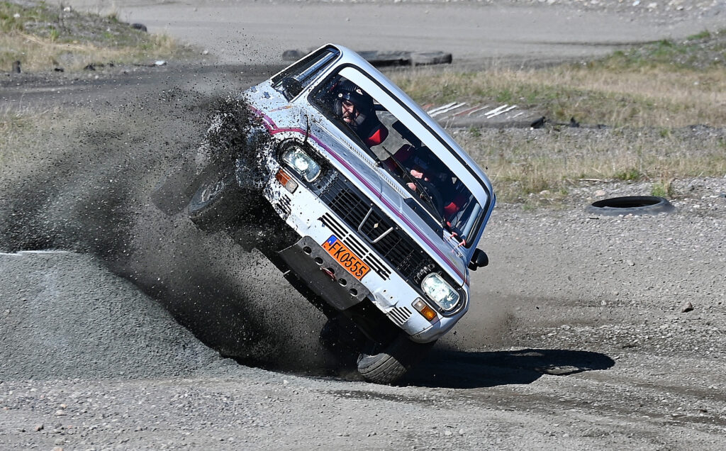 – Den går inte att jämföra med Chribbes bil. Den är standard rätt igenom, men det viktigaste idag är att ha kul, menade Kalle som delade bil med Pappa Björn.