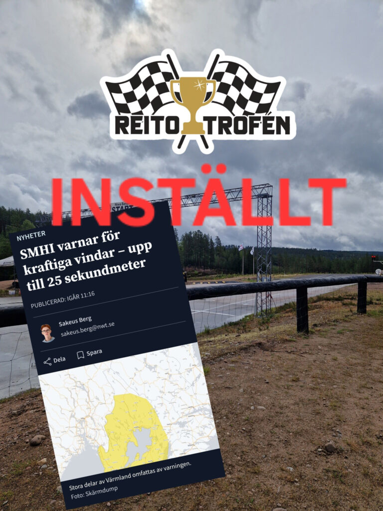 –På grund av de svåra väderförhållanden som råder imorgon kommer vi tyvärr behöva ställa in tävlingen. Vi har hoppats in i det sista att prognosen skulle ändras, men det gjorde det inte.SMHI har gått ut med varningar över Värmland och vi kan inte garantera säkerheten på området. Vi hoppas på förståelse!