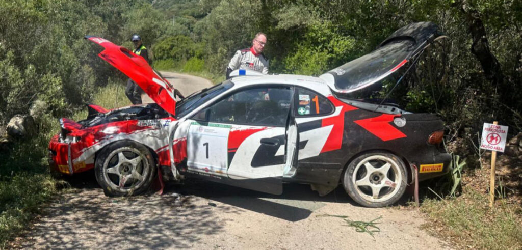 Ingen lyckad återkomst till Europa efter segern i USA med nya Toyota Corollan för Jari-Matti Latvala. ”JML” och Topi Luhtinen kom inte ens i mål på första sträckan i ”Rally Internazionale Storico Costa Smeralda – Trofeo Martini 2026” utan det blev istället ”accident” för EM-ledaren.