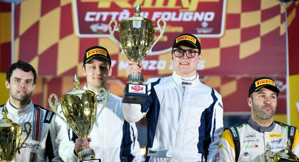 Även blåvit seger i Italien och ”Rally Città di Foligno” först ut i landets grusmästerskap, Här chockade 22-årige Benjamin Korhola de allra flest genom att köra ifrån Lancias affischnamn i WRC2, Nikolay Gryazin. Benjamin och Kristian Temonen gjorde sin första start med Skoda och gick upp ledning efter sträcka fyra. En ledning han behöll och i mål efter nio sträckor skilde 10,2 sekunder mellan de båda. Även som trea hittas en flitig WRC2-gäst, bolivianen Marco Bulacia med Skoda och 47 sekunder långsammare än Korhola.
