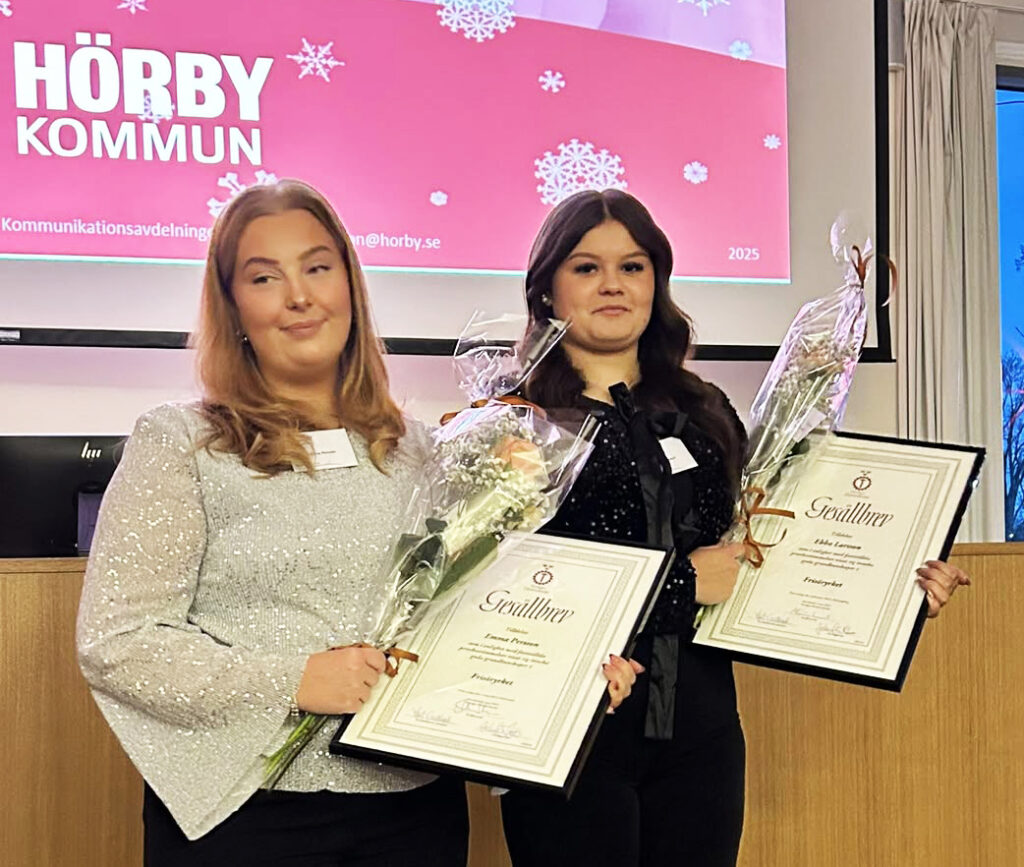 Det går bra nu för ”Årets Kartläsare 2025” i SMK Hörby, Ebba Larsson. Först det prestigefyllda priset i torsdags och igår var det dags att ta emot ”Gesällbrev” som frisör vid en ceremoni med Företagarna och Hörby Kommun. Samma yrkestitel fick också Emma Persson, även hon med stark rallyanknytning då hon till vardags finns i SMK Hörbys ordförande Malins Lindströms ”Hårcompaniet”. Dessutom är pappa Patrik Persson inte helt okänd, då han sedan många är med i gruppen som sköter Rally SM. Motorbloggen säger stort grattis till de båda duktiga tjejerna.