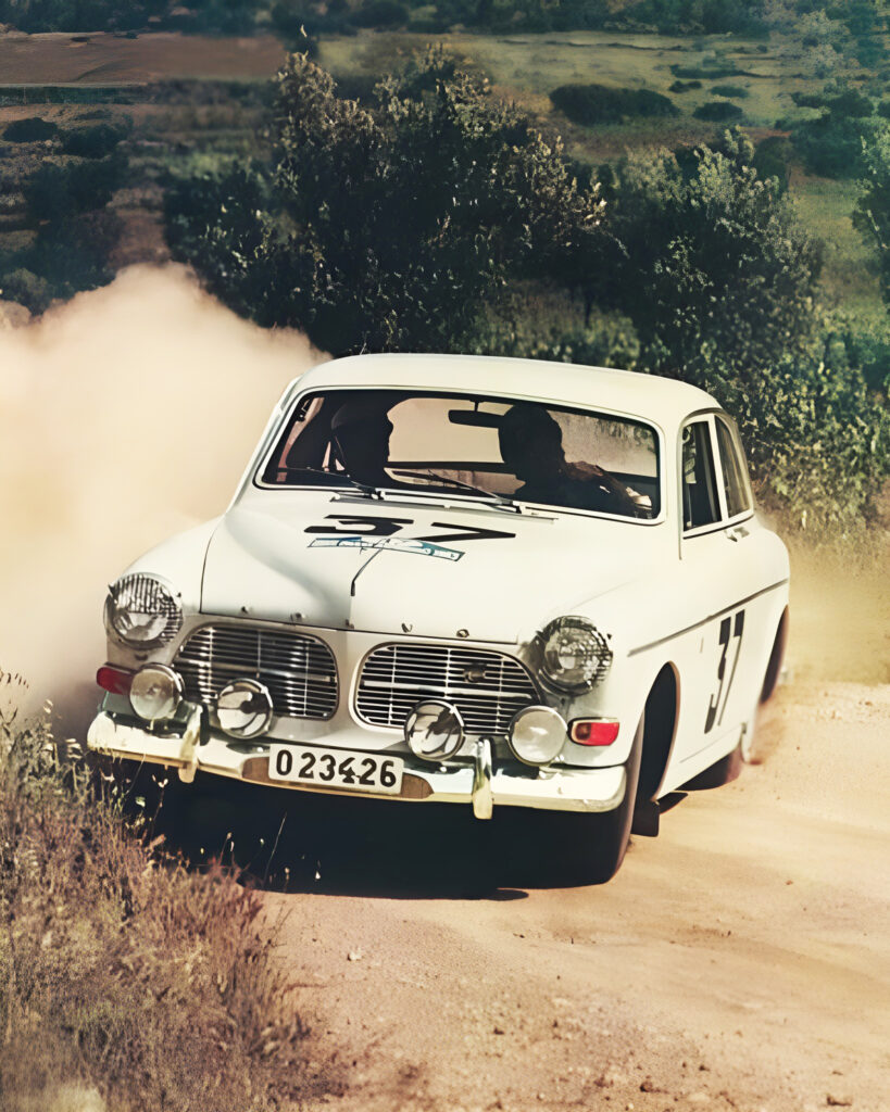 I mitt flöde dök idag denna bild upp och den förtjänar  verkligen uppmärksamhet. I den vita Volvo Amazon 122S finns Sylvia Österberg/Siv Sabel och tävlingen är  Akropolisrallyt 1965.